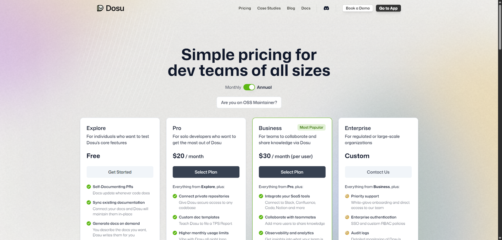 Dosu is a specialized AI documentation agent that addresses a common pain point in software development: keeping documentation accurate and up to date.