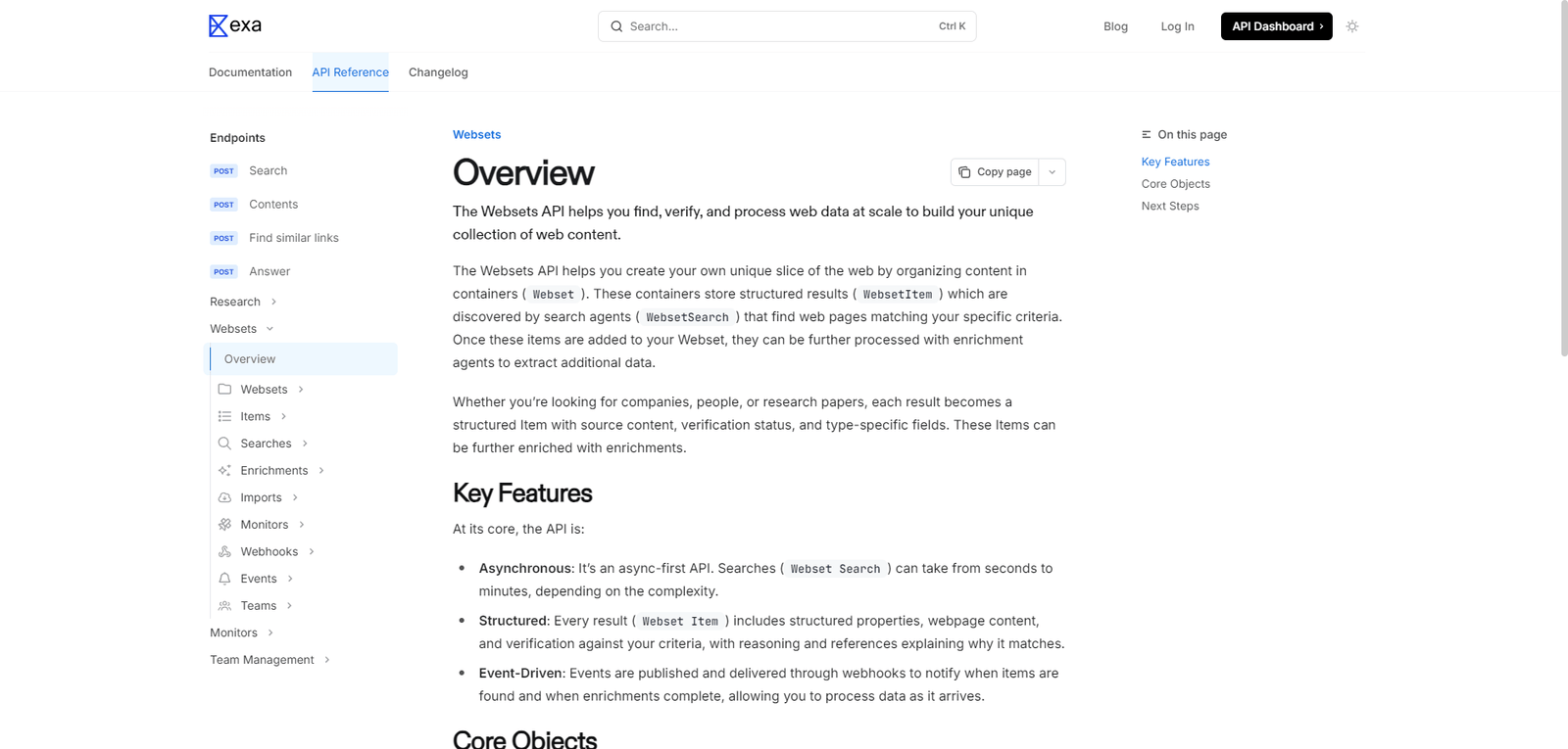 What is Exa Websets used for?