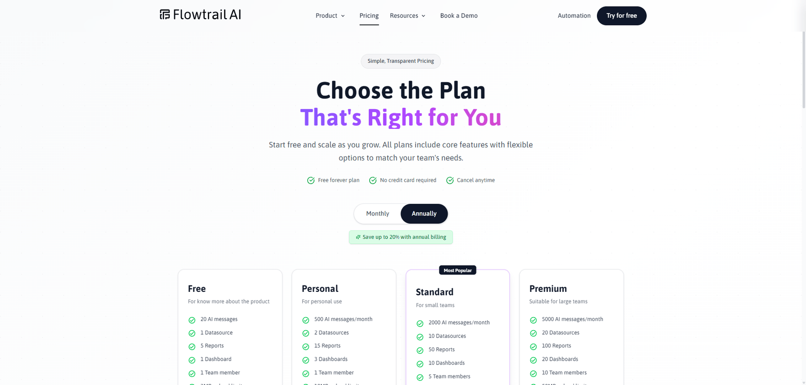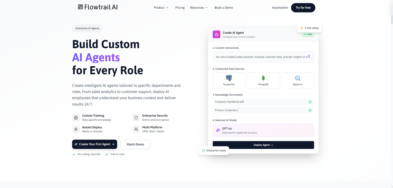 | Feature | Flowtrail AI | Power BI | Tableau |