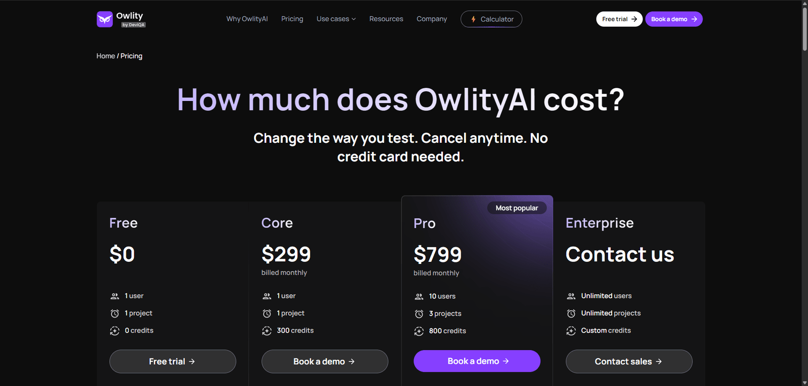 | Feature | Owlity | Selenium | Testim |
