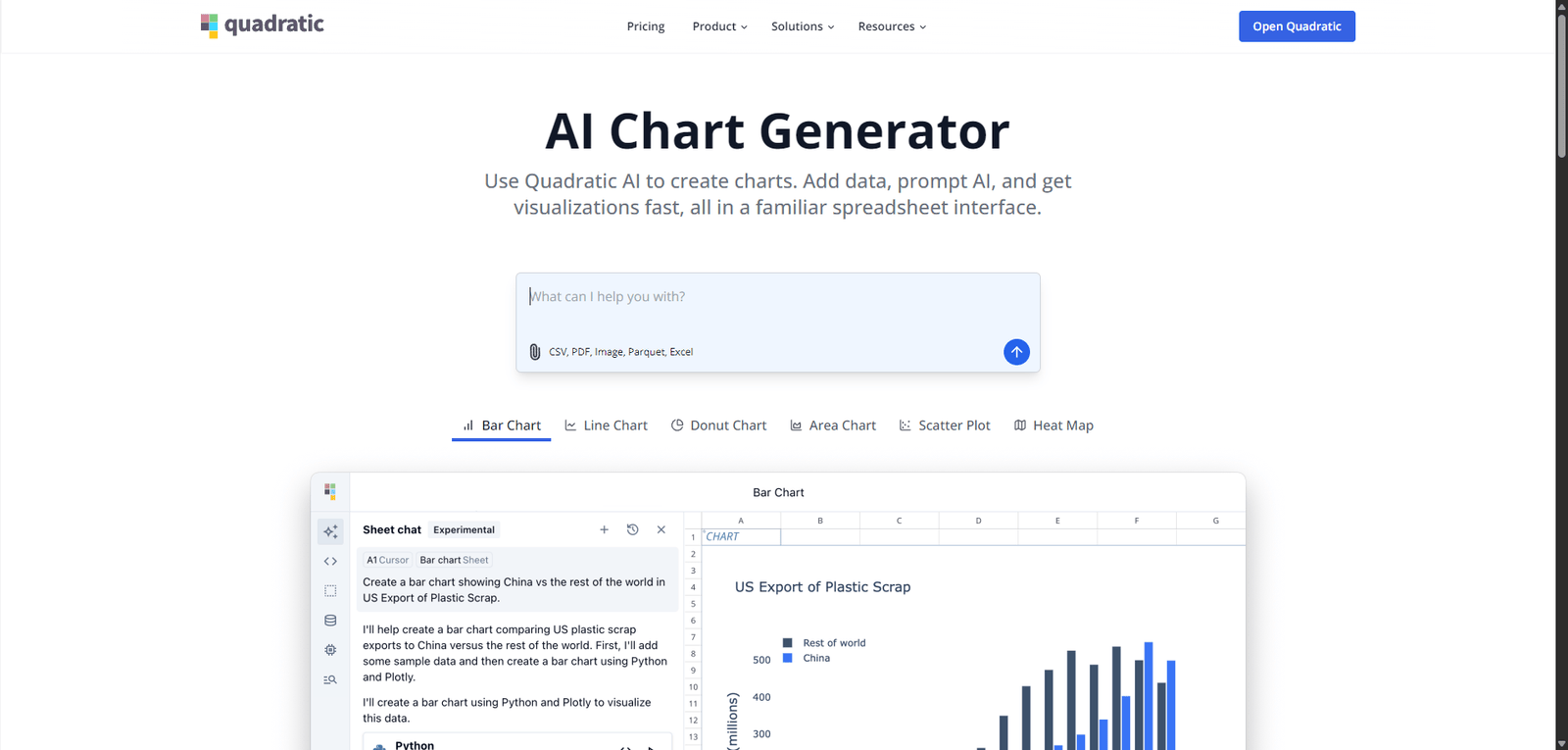 Quadratic is a modern AI-powered spreadsheet platform that redefines how users interact with data by combining AI, code, and traditional spreadsheet functionality into a single environment.
