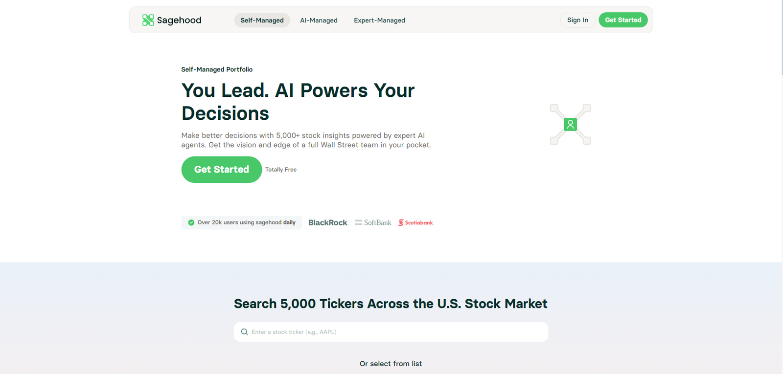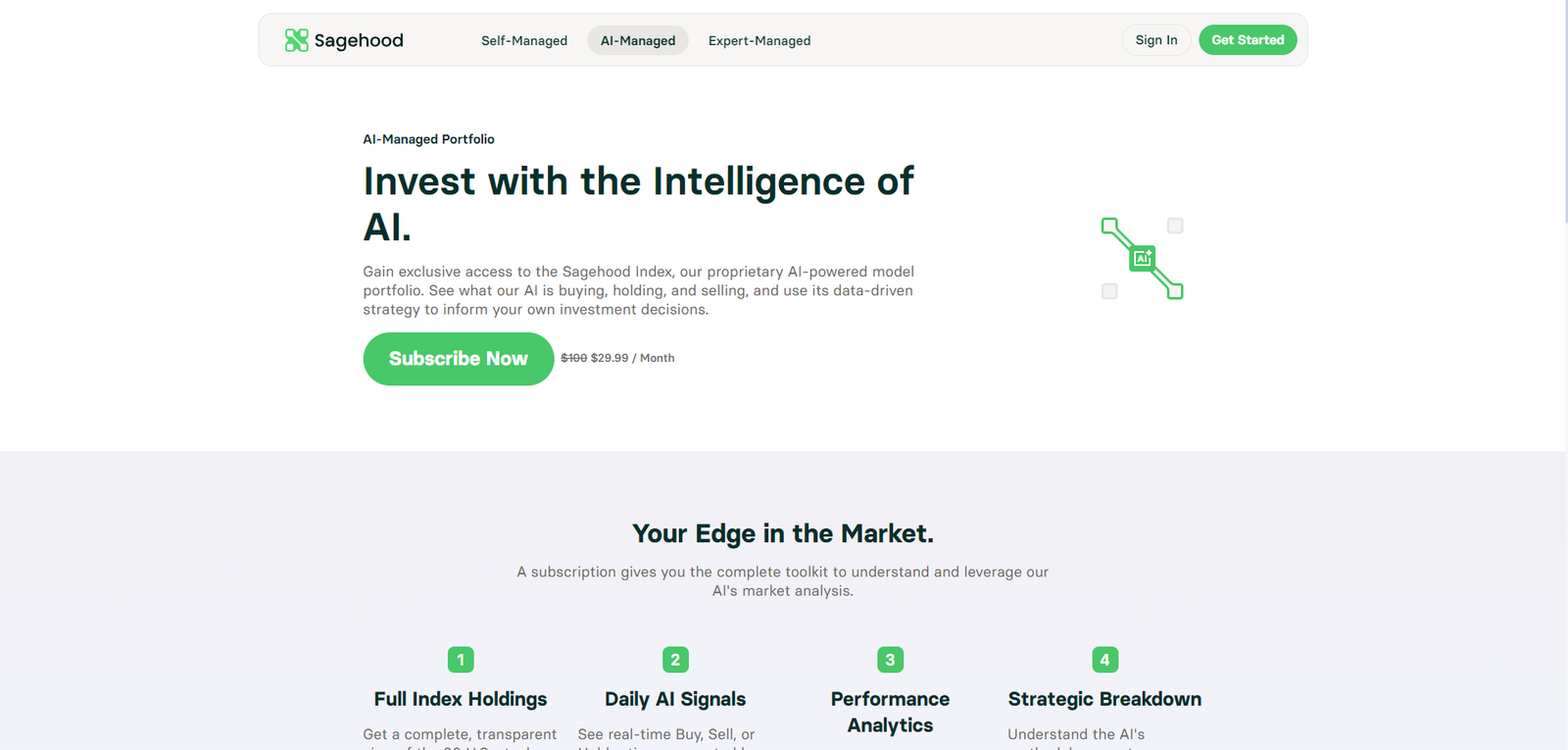 Sagehood positions itself as a smart financial assistant, helping users make better financial decisions without requiring deep financial expertise.
