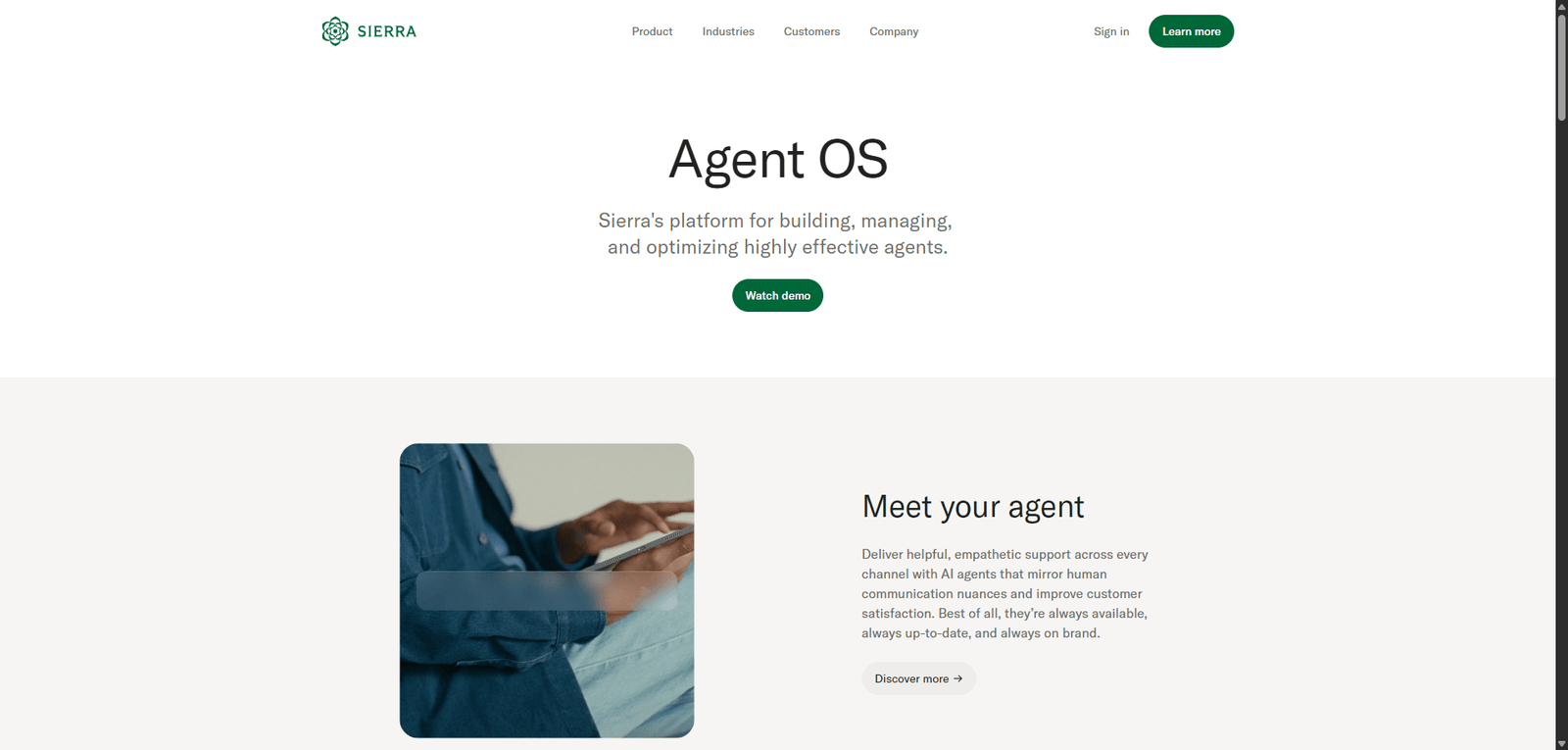 Sierra positions itself as a premium AI support solution, emphasizing quality of interaction over simple automation.