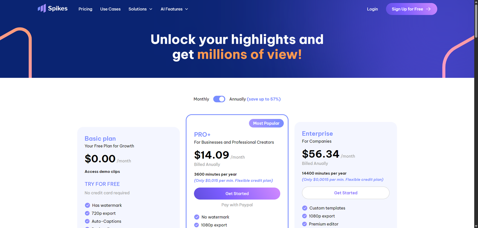 Spikes Studio is an AI-powered video generation and editing platform focused on creating short-form content for social media and digital platforms. It is designed to help users transform long videos into engaging, shareable clips automatically.